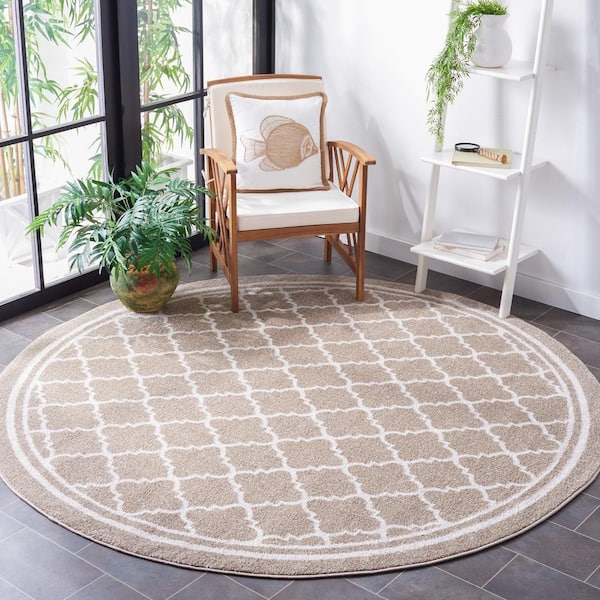 Amherst Wheat/Beige 9 ft. x 9 ft. Round Multi-Trellis Border Area Rug