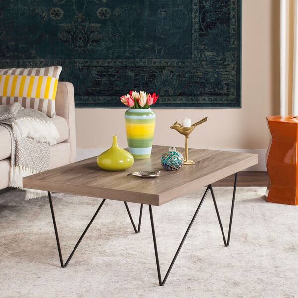 Amos 36 in. Light Gray/Black Wood Coffee Table with Storage