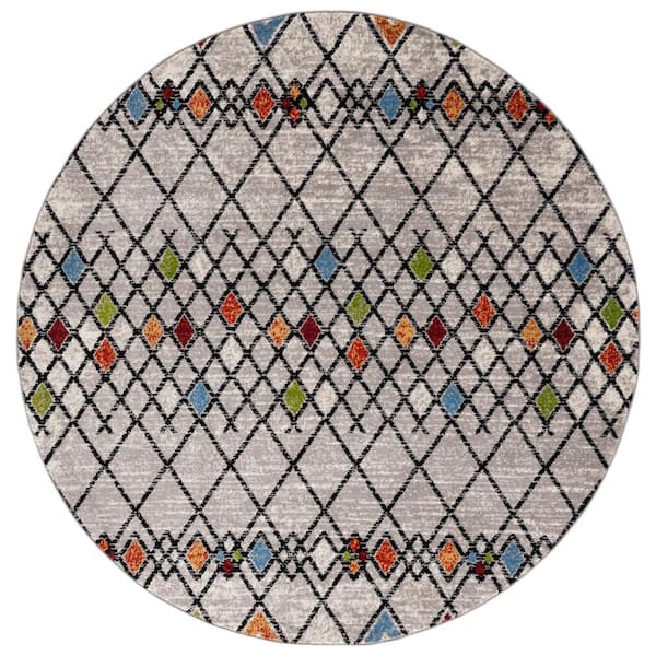 Amsterdam Beige/Blue 7 ft. x 7 ft. Geometric;Trellis Round Area Rug