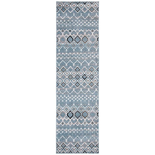 Amsterdam Blue/Ivory 2 ft. x 12 ft. Multi-Diamonds Chevron Runner Rug
