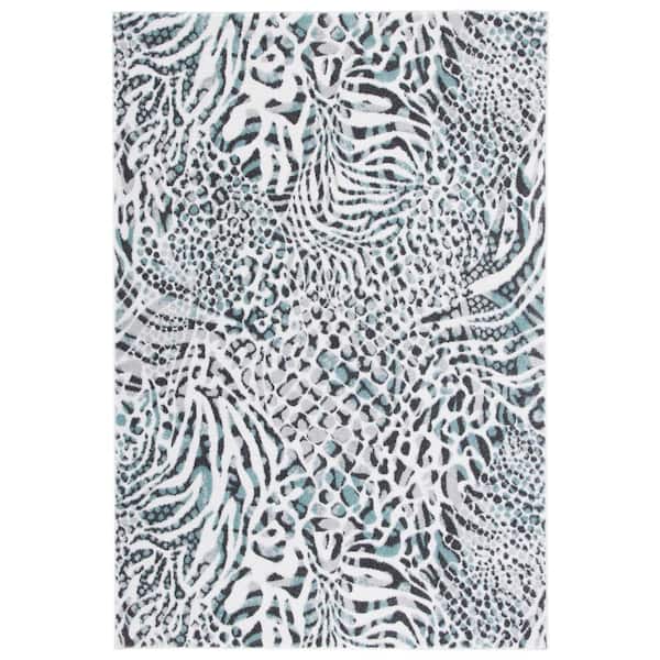 Amsterdam Ivory/Teal 5 ft. x 8 ft. Animal Print Area Rug