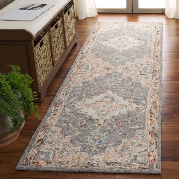 Anatolia 2 ft. x 8 ft. Gray/Rust Oversized Medallion Runner Rug