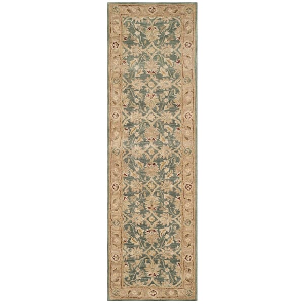 Antiquity Teal Blue/Taupe 2 ft. x 10 ft. Border Runner Rug
