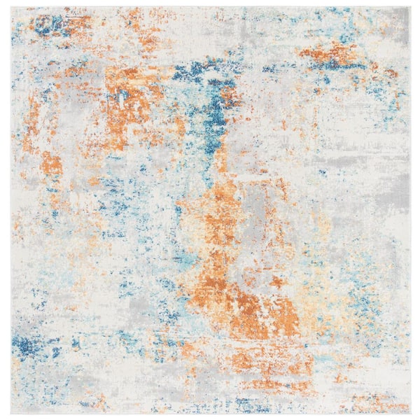 Aria 7 ft. x 7 ft. Ivory/Rust Distressed Abstract Square Area Rug