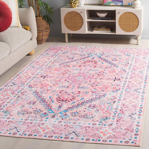 Arizona Beige/Pink 4 ft. x 6 ft. Machine Washable Ornate Floral Medallion Area Rug