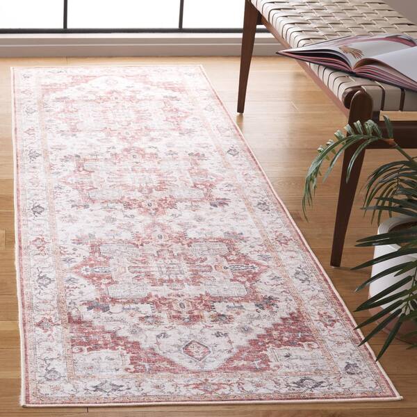 Arizona Beige/Rust 3 ft. x 8 ft. Distressed Border Ornate Machine Washable Runner Rug