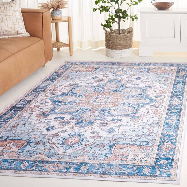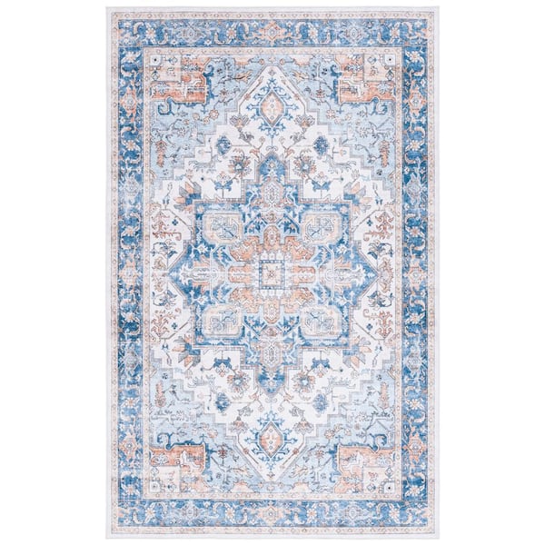 Arizona Blue/Beige 8 ft. x 10 ft. Distressed Border Ornate Machine Washable Area Rug