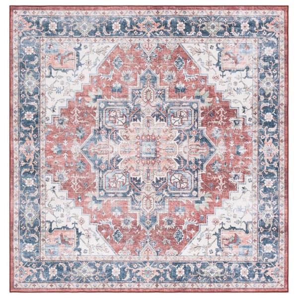 Arizona Brown/Blue 6 ft. x 6 ft. Distressed Border Ornate Machine Washable Square Area Rug