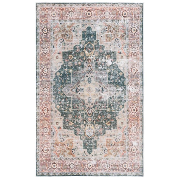 Arizona Green/Light Brown 9 ft. x 12 ft. Border Ornate Machine Washable Area Rug
