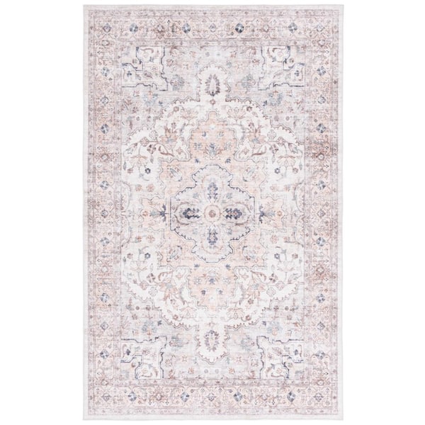 Arizona Peach/Beige 8 ft. x 10 ft. Distressed Border Ornate Machine Washable Area Rug