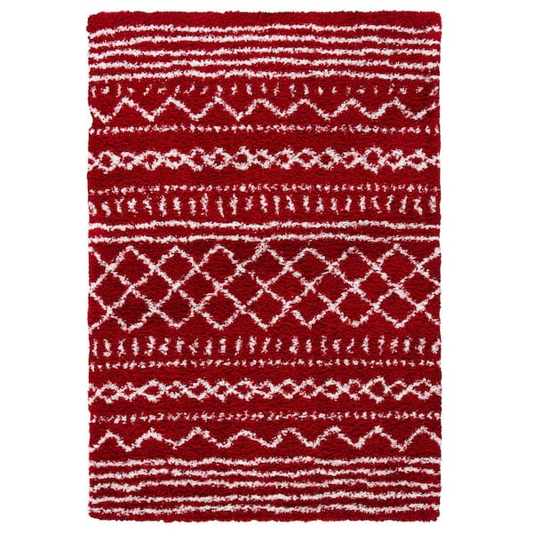 Arizona Shag 5 ft. x 8 ft. Red/Ivory Geometric Lodge Area Rug