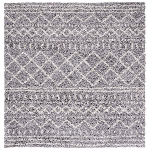 Arizona Shag Gray/Ivory 5 ft. x 5 ft. Geometric Lodge Square Area Rug