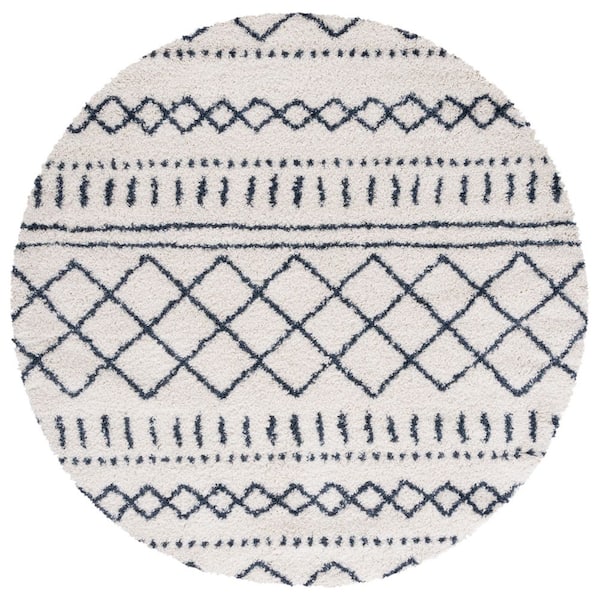 Arizona Shag Ivory/Slate 5 ft. x 5 ft. Geometric Lodge Round Area Rug