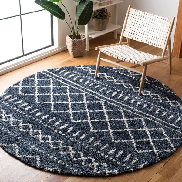 Arizona Shag Slate Blue/Ivory 7 ft. x 7 ft. Geometric Lodge Round Area Rug