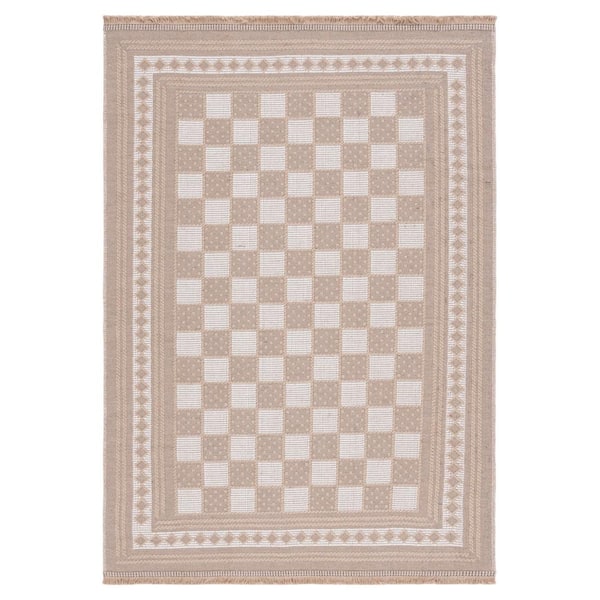 Aspect Natural/Ivory 4 ft. x 6 ft. Border Checkered Area Rug