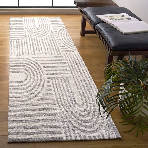 Audrey 2 ft. x 8 ft. Ivory/Gray Geometric Parallel Runner Rug