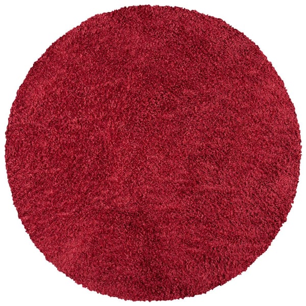August Shag Red 7 ft. x 7 ft. Solid Round Area Rug