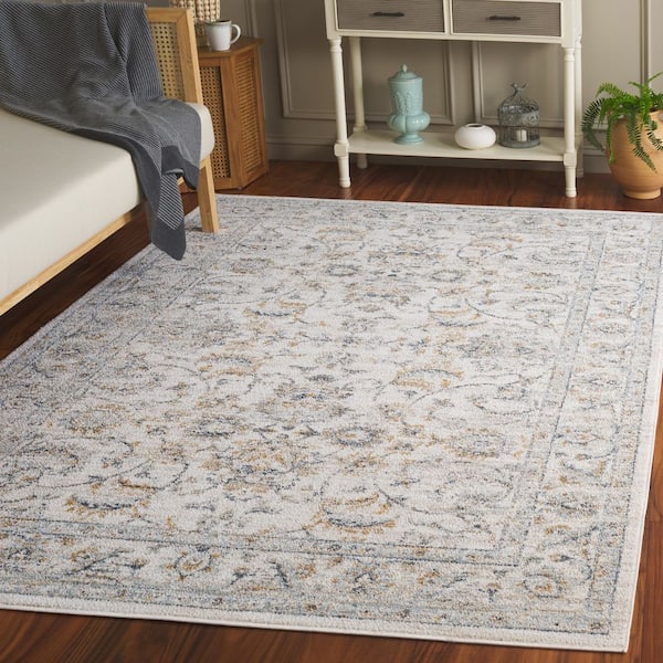 Avalon 4 ft. x 6 ft. Ivory/Blue Gold Ornate Distressed Border Area Rug