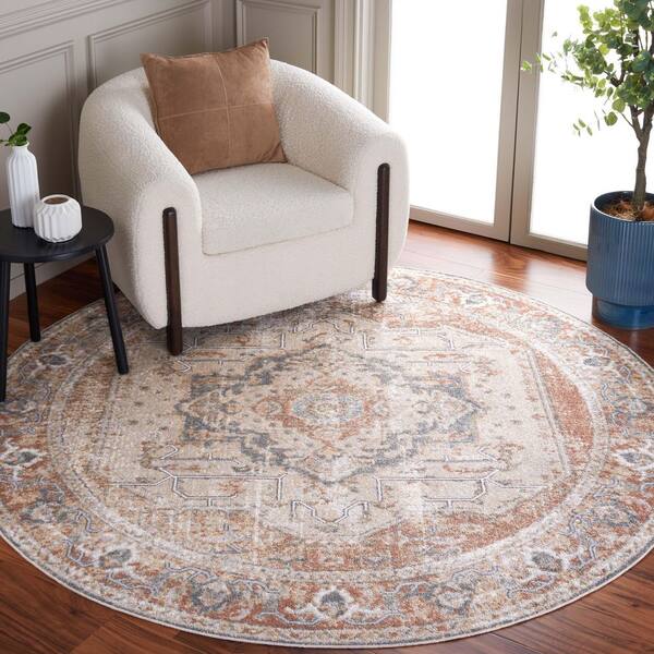 Baltimore 7 ft. x 7 ft. Beige/Rust Machine Washable Medallion Distressed Round Area Rug