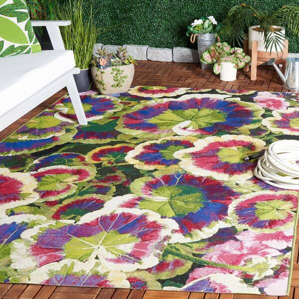 Barbados Black Green/Purple 10 ft. x 12 ft. Oversized Floral Indoor/Outdoor Area Rug