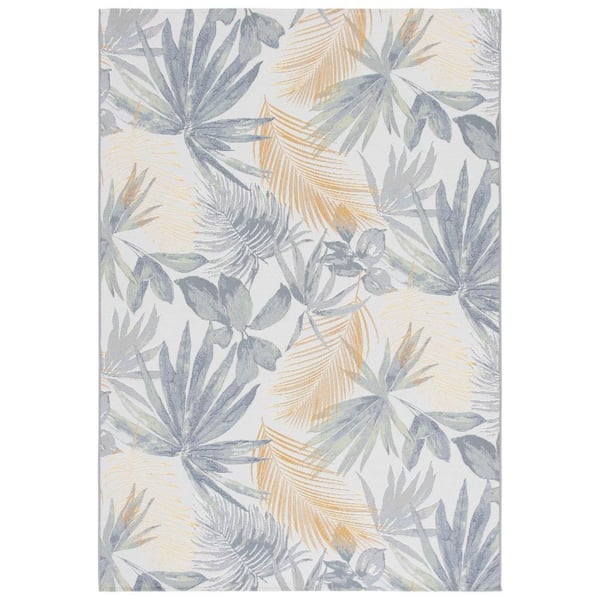 Barbados Ivory/Gray Green 4 ft. x 6 ft. Monochrome Botanical Indoor/Outdoor Area Rug