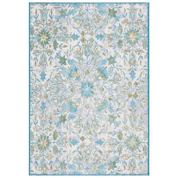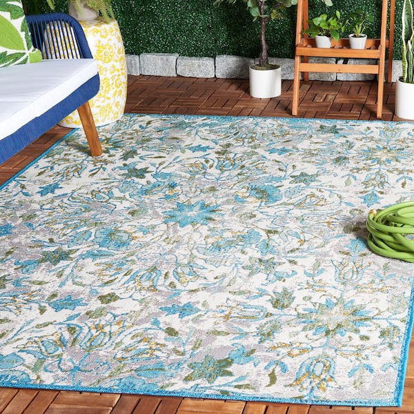 Barbados Ivory/Light Blue 5 ft. x 8 ft. Floral Medallion Indoor/Outdoor Area Rug
