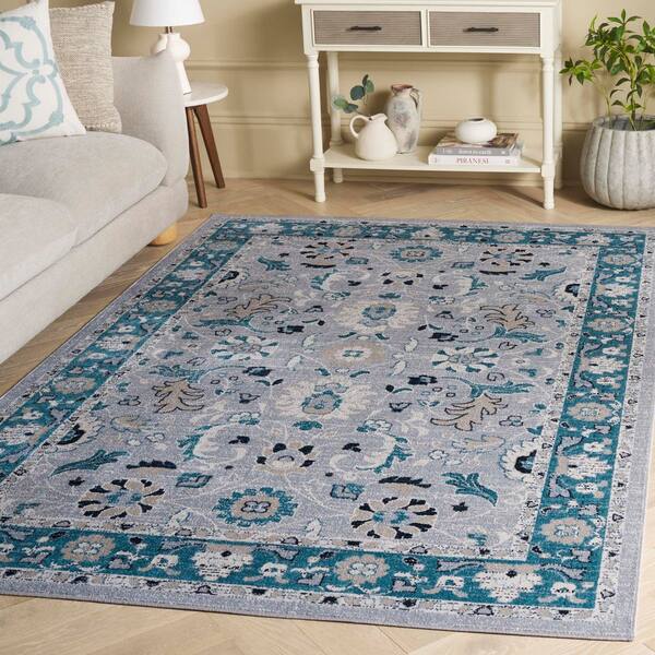 Bayside 9 ft. x 12 ft. Blue/Gray Traditional Floral Area Rug