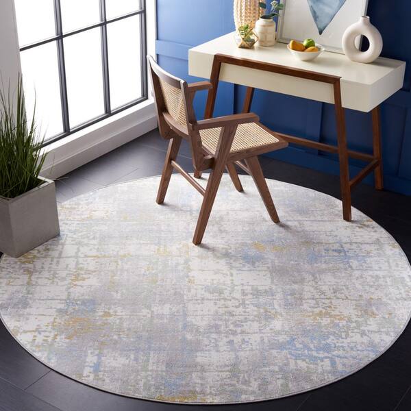 Bayside Gray/Ivory Blue 7 ft. x 7 ft. Machine Washable Abstract Distressed Round Area Rug