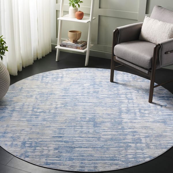 Bayside Ivory/Blue 7 ft. x 7 ft. Machine Washable Parallel Striped Round Area Rug