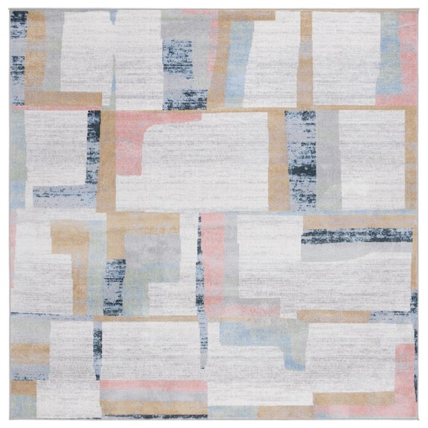 Bayside Ivory/Blue Rust 7 ft. x 7 ft. Machine Washable Abstract Geometric Square Area Rug