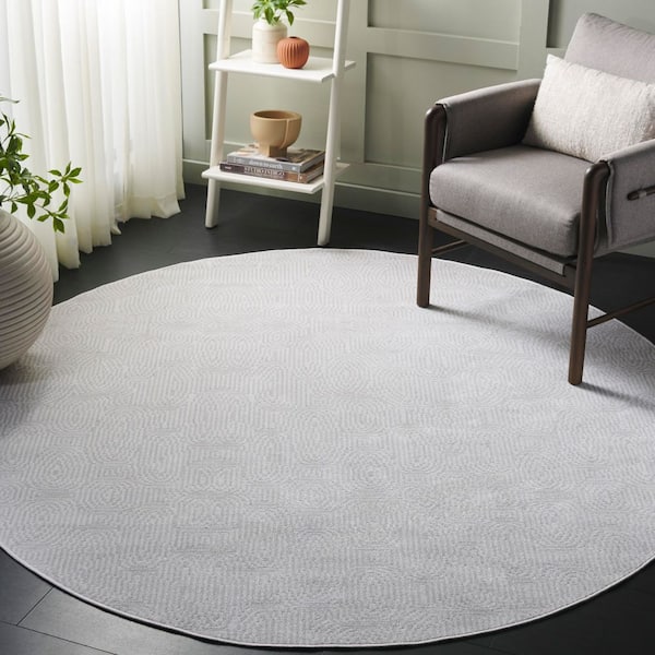 Bayside Ivory/Light Gray 7 ft. x 7 ft. Machine Washable Solid Geometric Round Area Rug