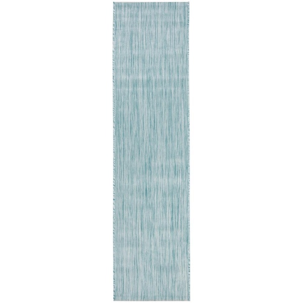 Beach House Aqua 2 ft. x 8 ft. Striped Indoor/Outdoor Patio Runner Rug