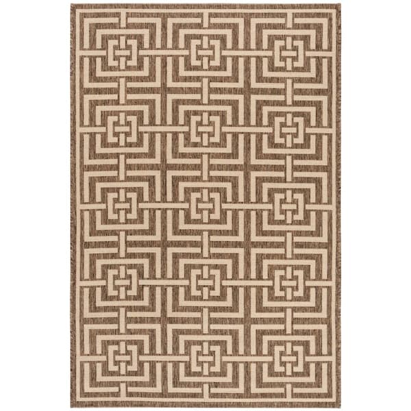 Beach House Beige/Cream 4 ft. x 6 ft. Geometric Indoor/Outdoor Patio Area Rug