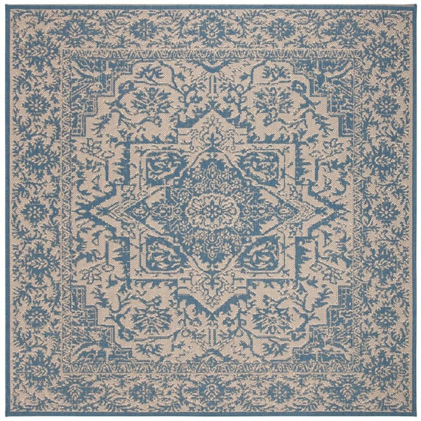 Beach House Cream/Blue 4 ft. x 4 ft. Medallion Indoor/Outdoor Patio Square Area Rug