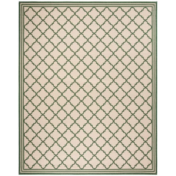 Beach House Cream/Green 9 ft. x 12 ft. Trellis Indoor/Outdoor Patio Area Rug