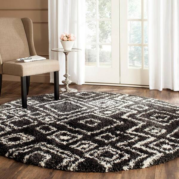 Belize Shag Charcoal/Ivory 7 ft. x 7 ft. Round Geometric Tribal Area Rug