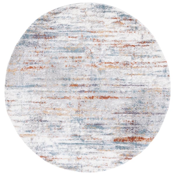 Berber Shag 5 ft. x 5 ft. Blue Rust/Ivory Marle Striped Round Area Rug