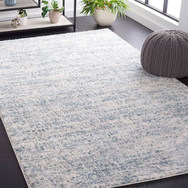 Berber Shag 6 ft. x 9 ft. Ivory/Light Aqua 2-Toned Solid Area Rug