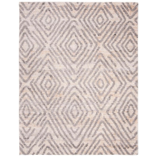 Berber Shag Cream/Gray 8 ft. x 10 ft. Medallion Diamond Geometric Area Rug