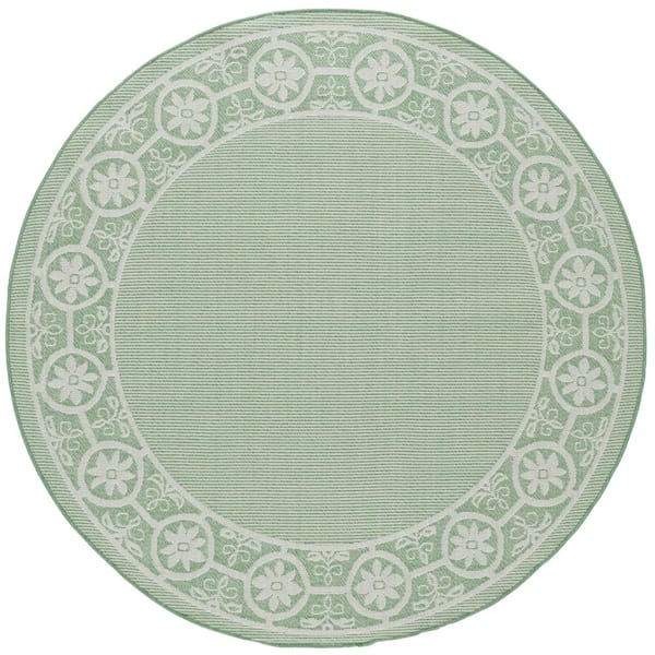 Bermuda Green/Ivory 7 ft. x 7 ft. Ornate Border Round Indoor/Outdoor Area Rug