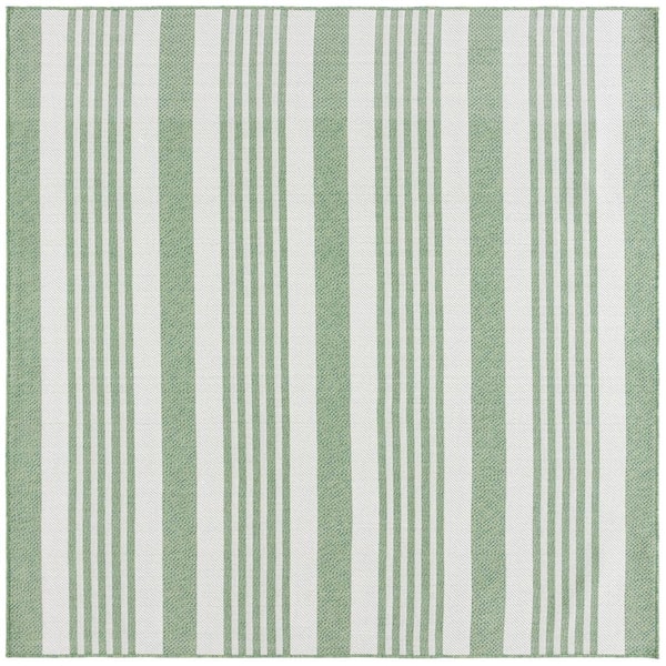 Bermuda Green/Ivory 7 ft. x 7 ft. Striped Square Indoor/Outdoor Area Rug