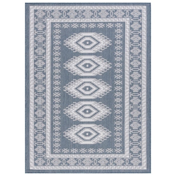 Bermuda Navy/Ivory 4 ft. x 6 ft. Border Medallion Indoor/Outdoor Area Rug