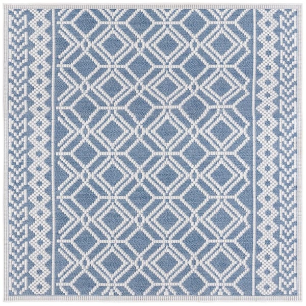 Bermuda Navy/Ivory 7 ft. x 7 ft. Border Geometric Diamond Square Indoor/Outdoor Area Rug
