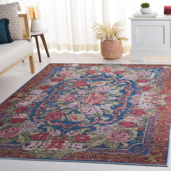 Besarabian Blue/Sage Rust 7 ft. x 7 ft. Machine Washable Border Floral Square Area Rug