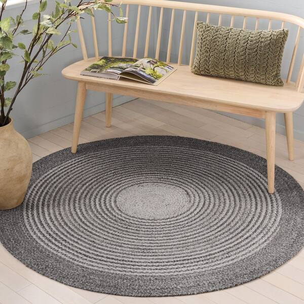 Braided 3 ft. x 3 ft. Charcoal/Gray Border Striped Gradient Round Area Rug