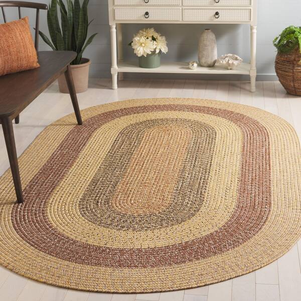 Braided Beige/Brown 8 ft. x 10 ft. Machine Washable Solid Striped Border Oval Area Rug