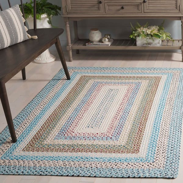 Braided Beige/Light Blue 3 ft. x 3 ft. Machine Washable Striped Multicolor Square Area Rug