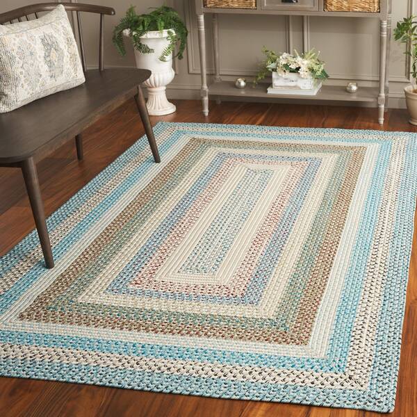 Braided Beige/Light Blue 6 ft. x 9 ft. Machine Washable Striped Multicolor Area Rug