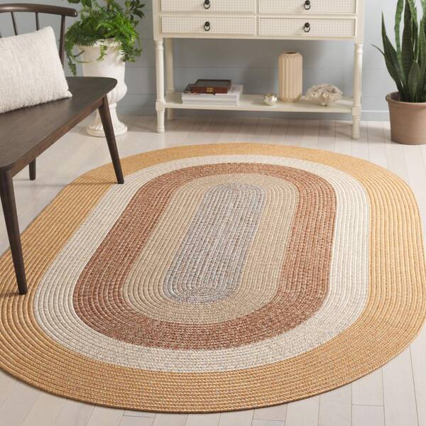 Braided Brown/Light Brown 5 ft. x 8 ft. Machine Washable Solid Striped Border Oval Area Rug