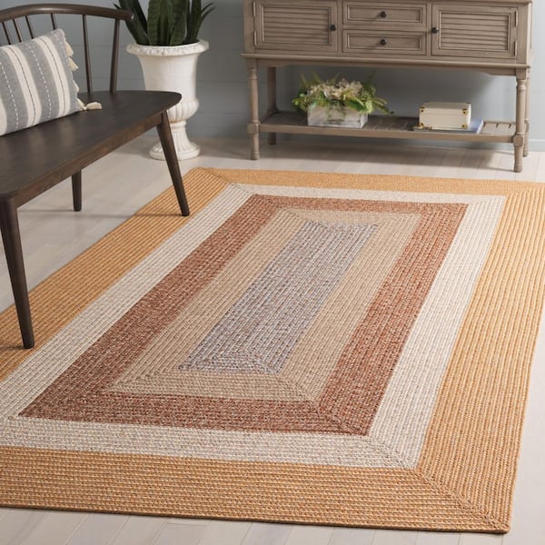 Braided Brown/Light Brown 6 ft. x 9 ft. Machine Washable Solid Striped Border Area Rug